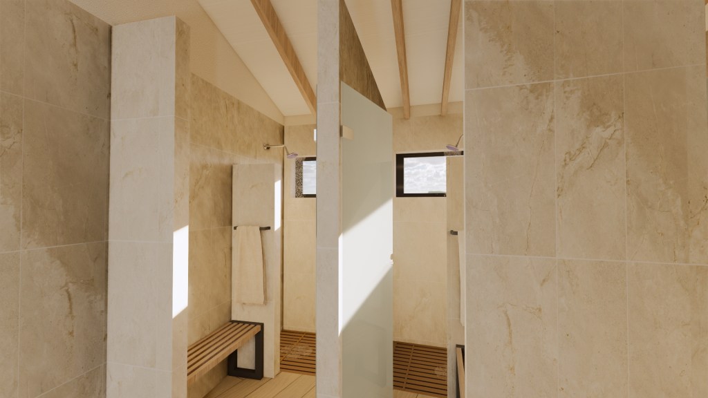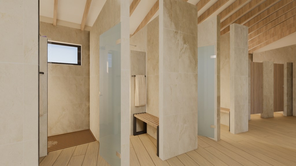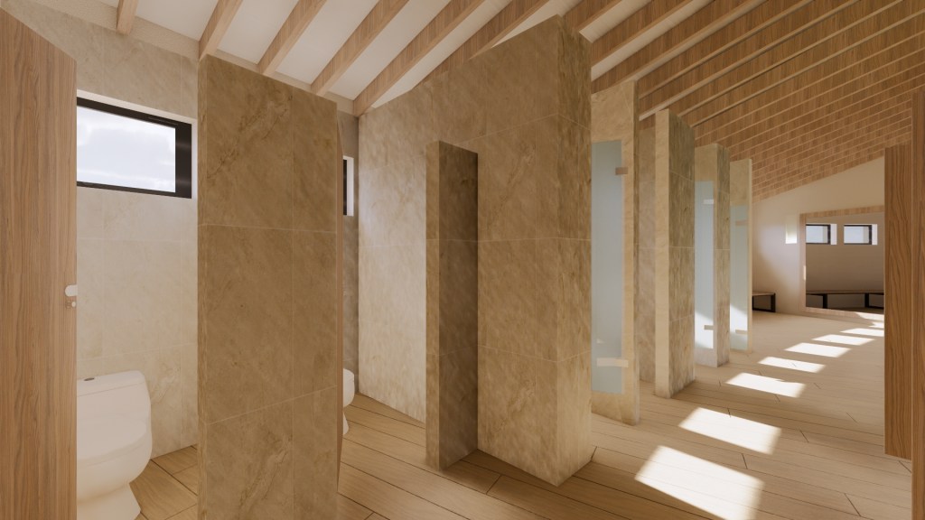 Diseño y adecuación de baños para zona de piscina, contemplando áreas para damas y caballeros, desarrollados bajo un enfoque contemporáneo con elementos en madera que aportan calidez y armonía al espacio. El proyecto integra zonas funcionales organizadas para garantizar confort, durabilidad y una adecuada experiencia de uso en entorno recreativo.