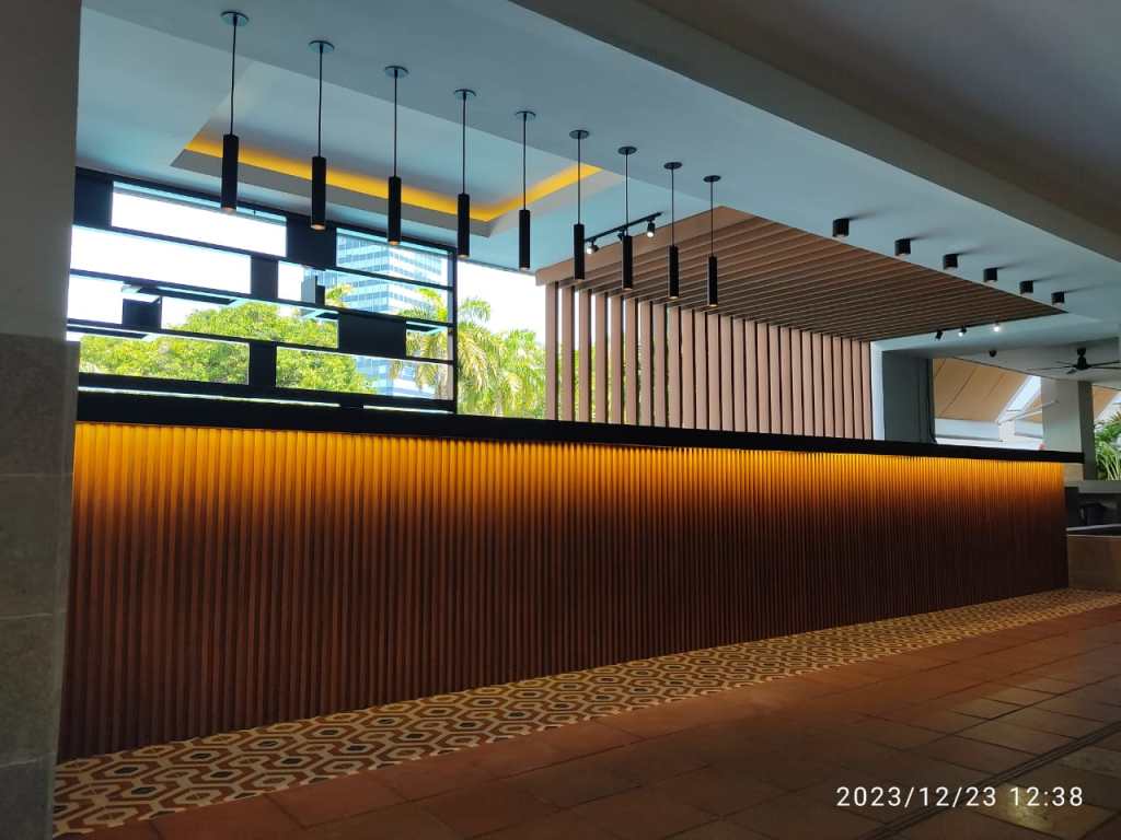 Diseño y ejecución de punto de servicio, incorporando elementos de metalmecánica en componentes decorativos, logrando un espacio funcional con identidad y valor estético.